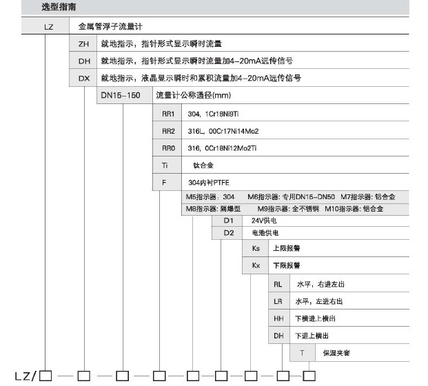 LZ-DX-15,LZ-DX-25,LZ-DX-40,LZ-DX-50,LZ-DX-80,LZ-DX-100,LZ-DX-150,金屬管浮子流量計M5指示器