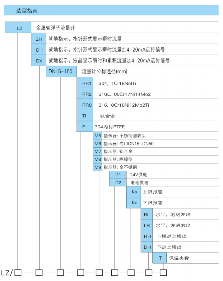 LZ-DX-15,LZ-DX-25,LZ-DX-40,LZ-DX-50,LZ-DX-80,LZ-DX-100,LZ-DX-150,金屬管浮子流量計(jì)