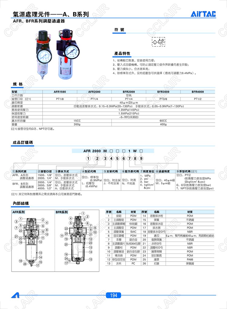 AFR1500,AFR1500M,AFR2000,AFR2000M,BFR2000,BFR2000M,BFR2000A,臺(tái)灣AIRTAC調(diào)壓過(guò)濾器