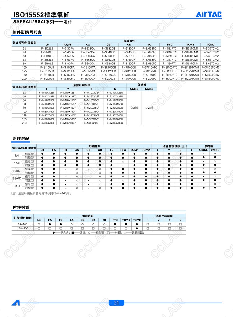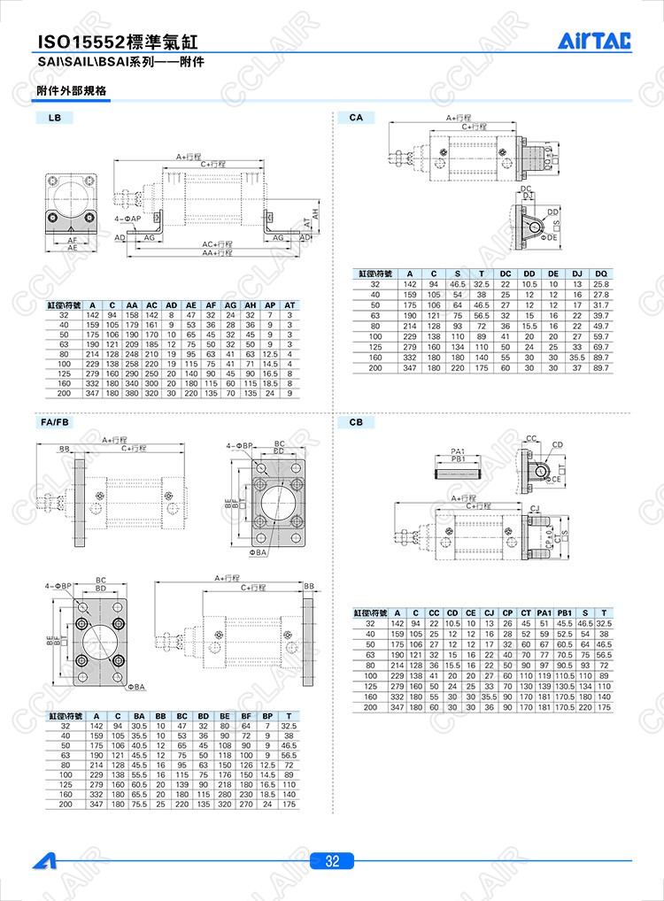 LB32,CA32,FA/FB32,CB32,CR32,TC32,FTC32,TCM132,TCM232,AIRTAC亞德客標(biāo)準(zhǔn)氣缸附件