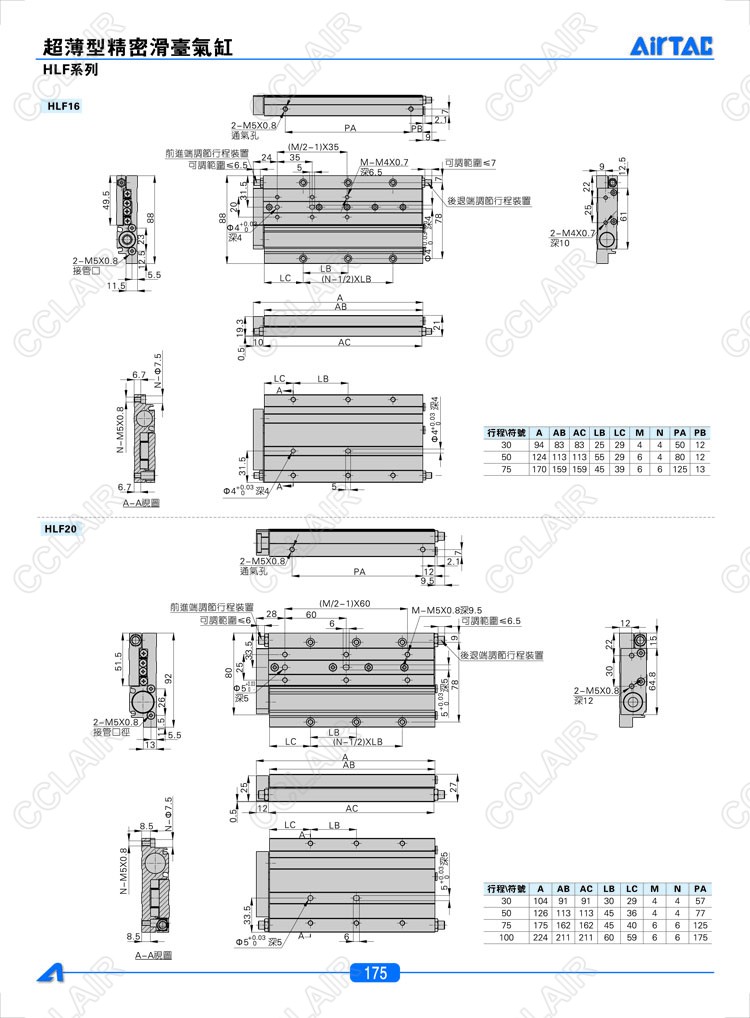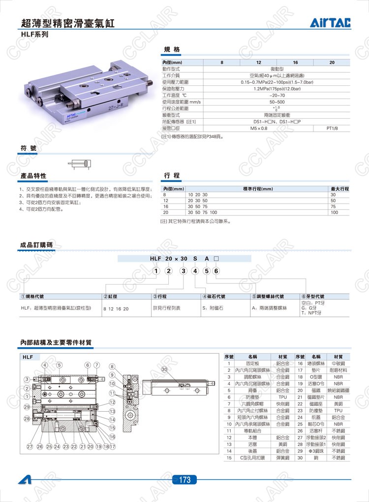 HLF8*10-S,HLF8*20-S,HLF8*30-S,HLF12*20-S,HLF12*30-S,AIRTAC亞德客超薄型精密滑臺(tái)氣缸