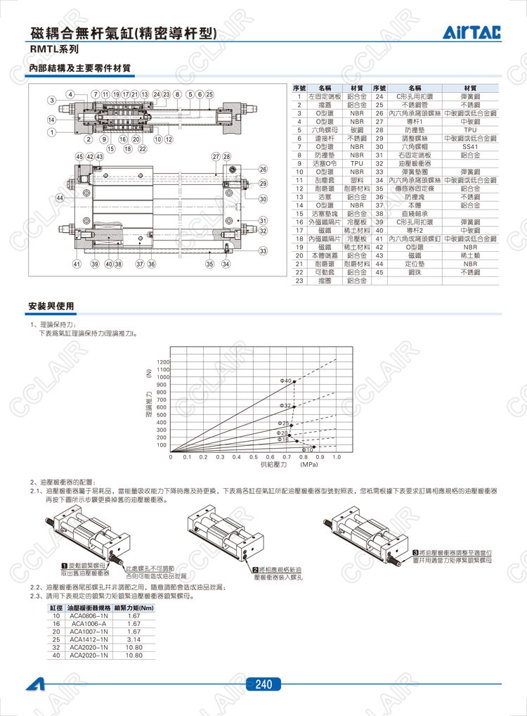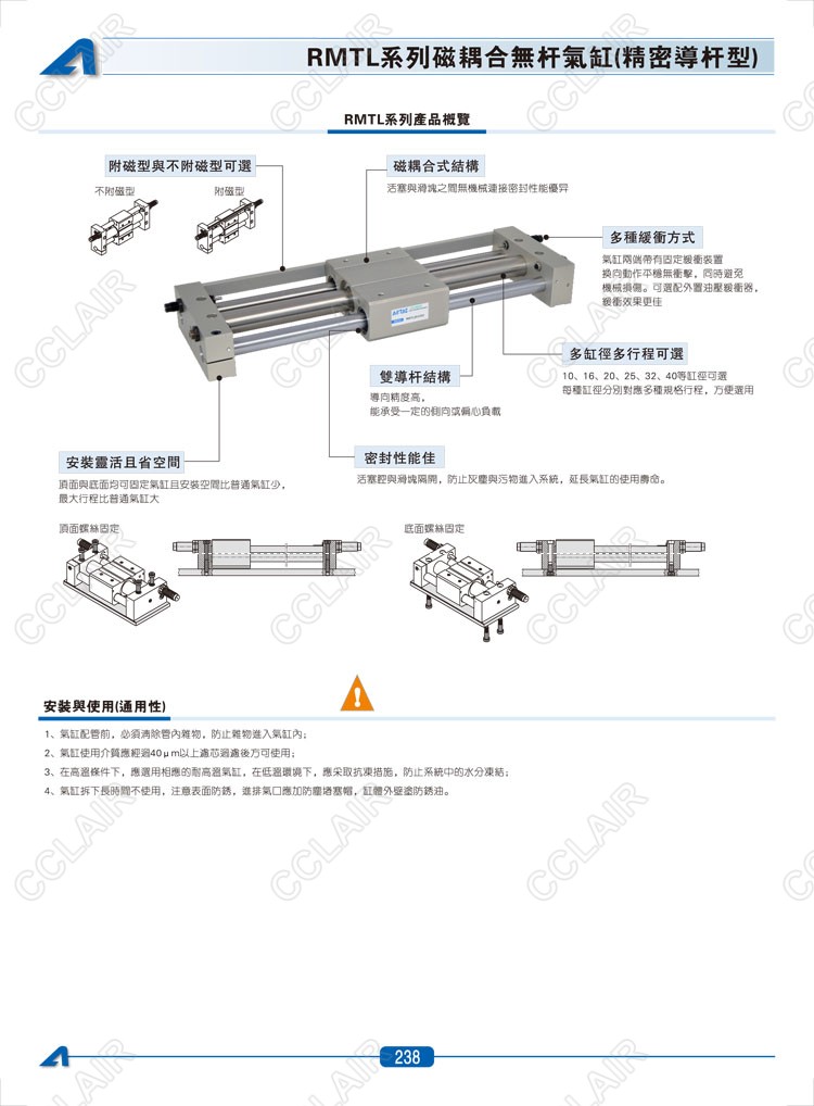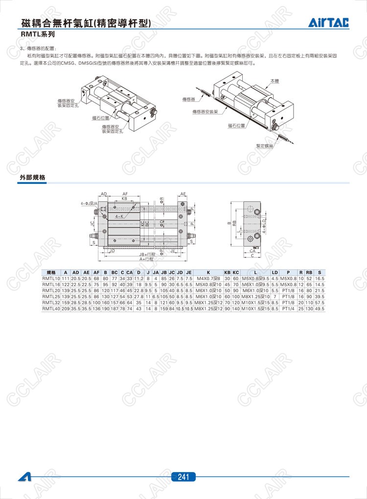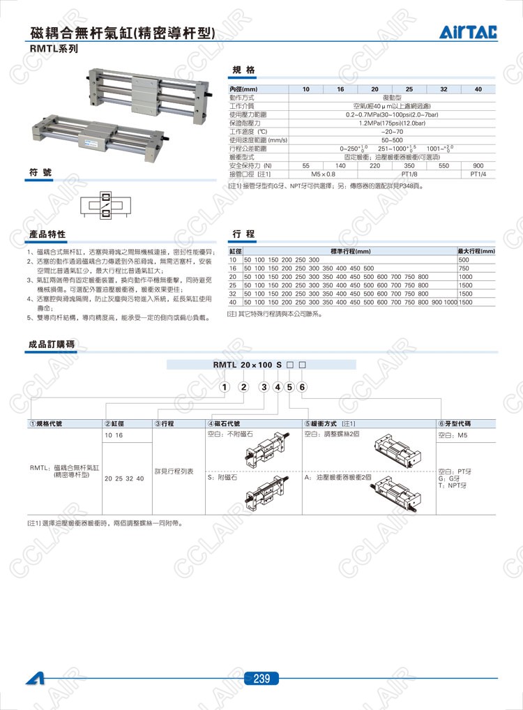 亞德客AIRTAC,RMTL16*50,RMTL20*50,RMTL25*50,RMTL32*50,RMTL32*50-S,RMTL40*50,RMTL40*50-S,磁耦合無桿氣缸