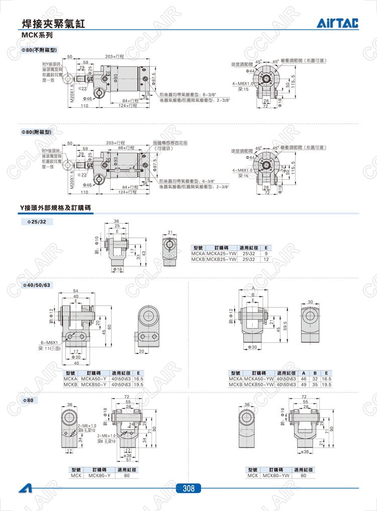 亞德客AIRTAC,MCKA25*50,MCKA25*50-S,MCKB25*50,MCKB25*50-S,MCK80*50,MCK80*50-S,焊接夾緊氣缸