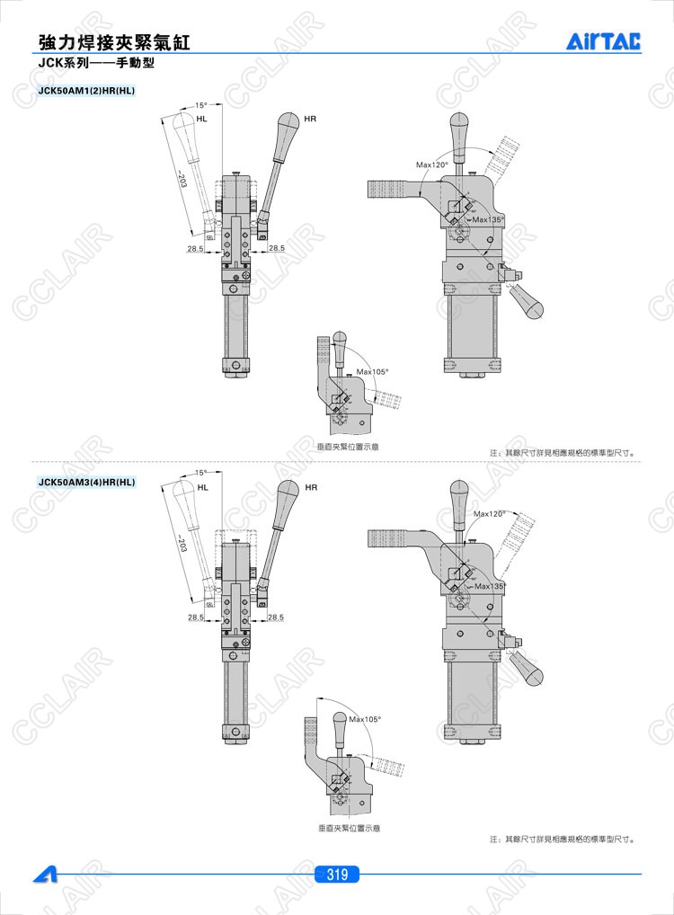 亞德客AIRTAC,JCK40*15AM1R,JCK40*15AM1C,JCKV40*15AM1R,JCKV40*15AM1C,JCKV40*15AM1L,焊接夾緊氣缸-手動(dòng)型