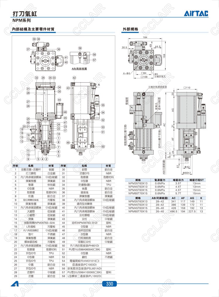 亞德客AIRTAC,NPM35T63*13,NPM45T63*13,NPM45T63*15,NPM60T70*15,打刀氣缸