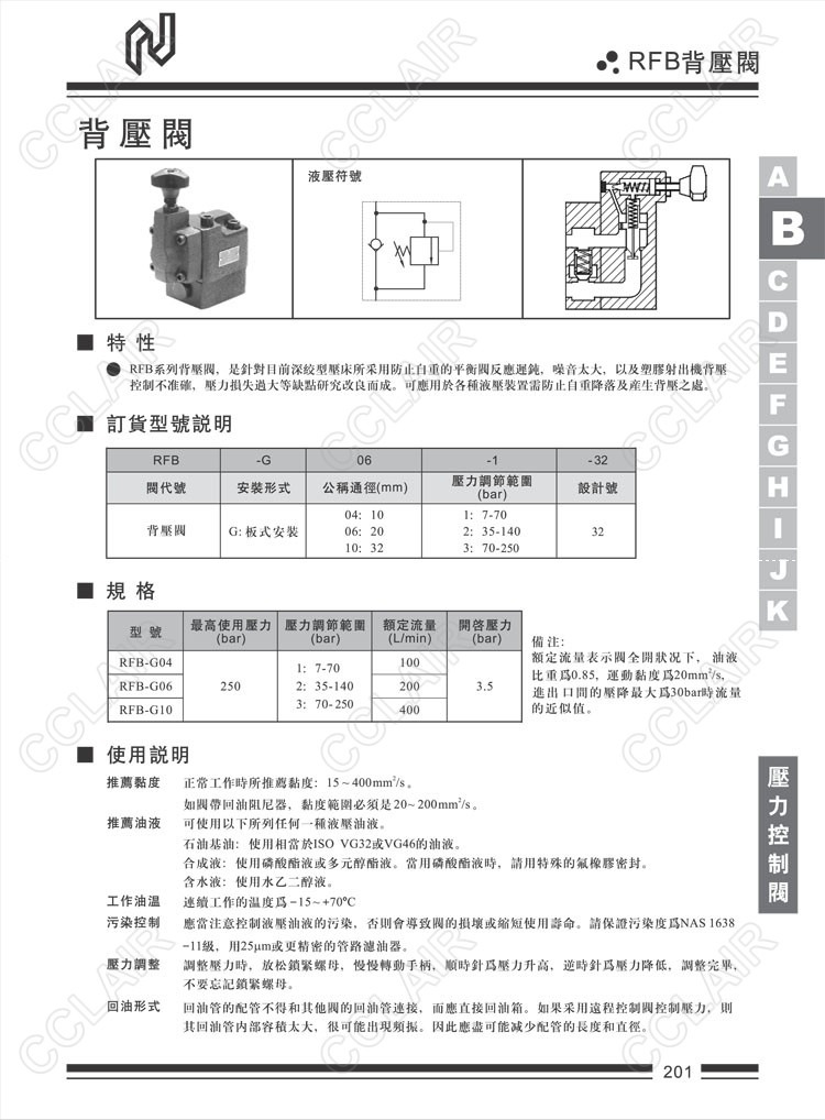 Northman北部精機,背壓閥RFB-G-04-1-32,RFB-G-04-2-32,RFB-G-04-3-32,RFB-G-06-1-32,RFB-G-06-2-32,RFB-G-06-3-32,RFB-G-10-1-32,RFB-G-10-2-32,RFB-G-10-3-32