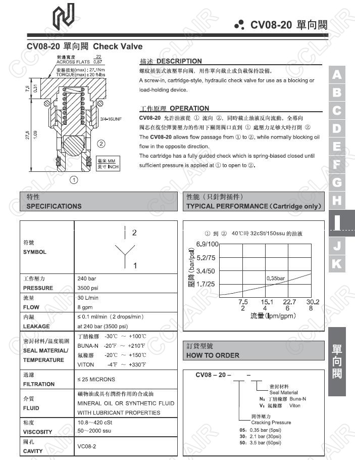 Northman臺灣北部精機(jī),單向閥CV08-20-05-N,CV08-20-05-V,CV08-20-30-N,CV08-20-30-V,CV08-20-50-N,CV08-20-50-V