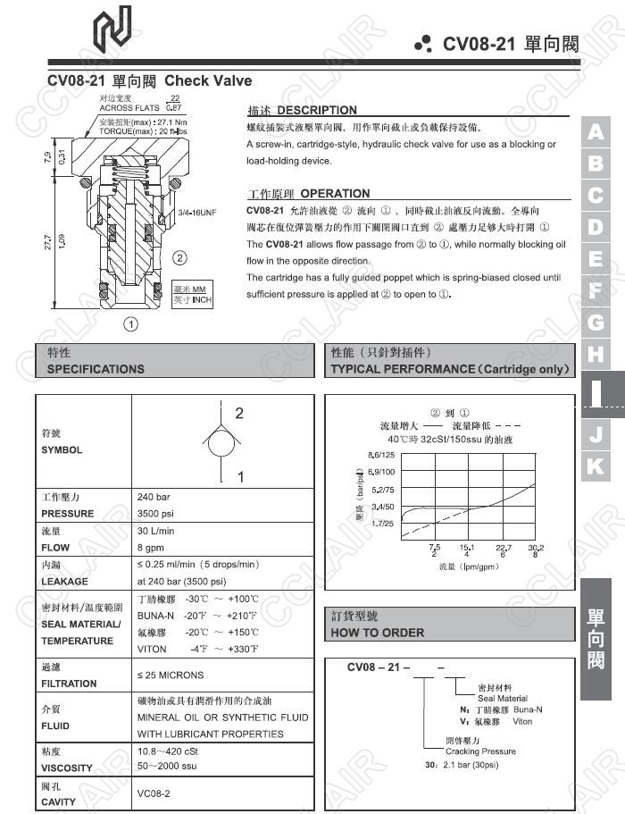 CV08-21-30-N,CV08-21-30-V,Northman臺灣北部精機,單向閥