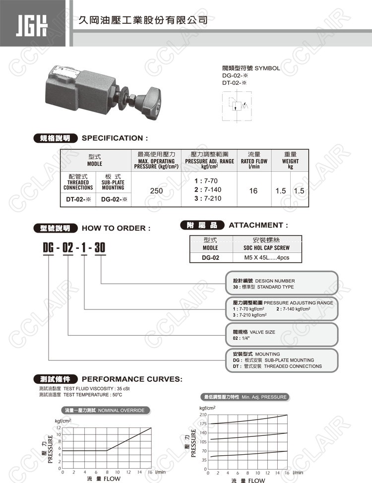 JeouGang臺灣久岡,直動式溢流閥DG-02-1-30,DG-02-2-30,DG-02-3-30,DT-02-1-30,DT-02-2-30,DT-02-3-30