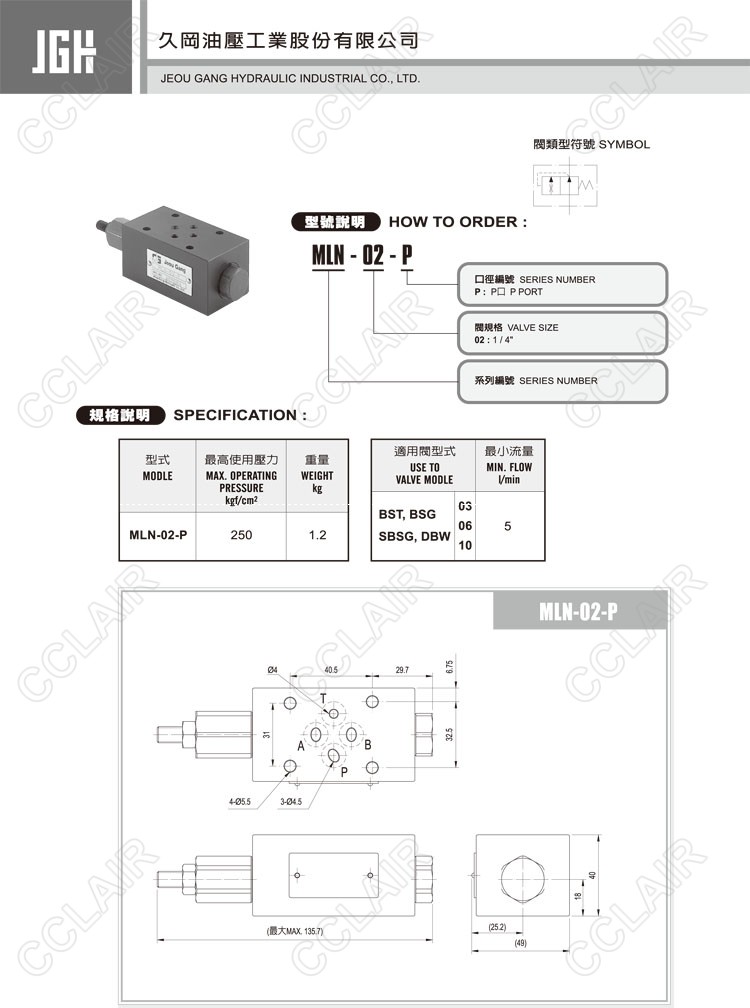 JeouGang臺(tái)灣久岡,疊加式緩沖閥MLN-02-P