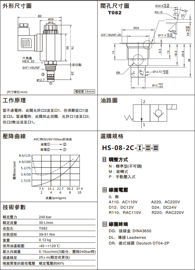 HS-08-2C-P-0-DR,HS-08-2C-P-A110-DR,HS-08-2C-P-D12-DR,HS-08-2C-P-R110-DR,HS-08-2C-P-A220-DR,HS-08-2C-P-D24-DR,HS-08-2C-P-R220-DR,兩通常開型電磁換向閥
