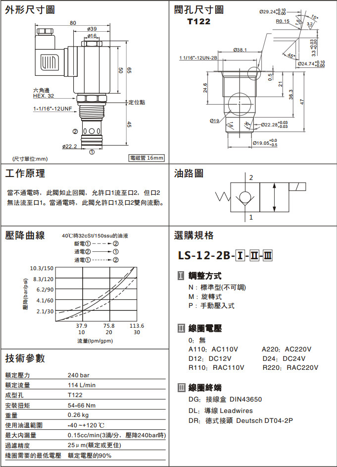 LS-12-2B-P-0-DR,LS-12-2B-P-A110-DR,LS-12-2B-P-D12-DR,LS-12-2B-P-R110-DR,LS-12-2B-P-A220-DR,LS-12-2B-P-D24-DR,LS-12-2B-P-R220-DR,兩通常閉型電磁換向閥