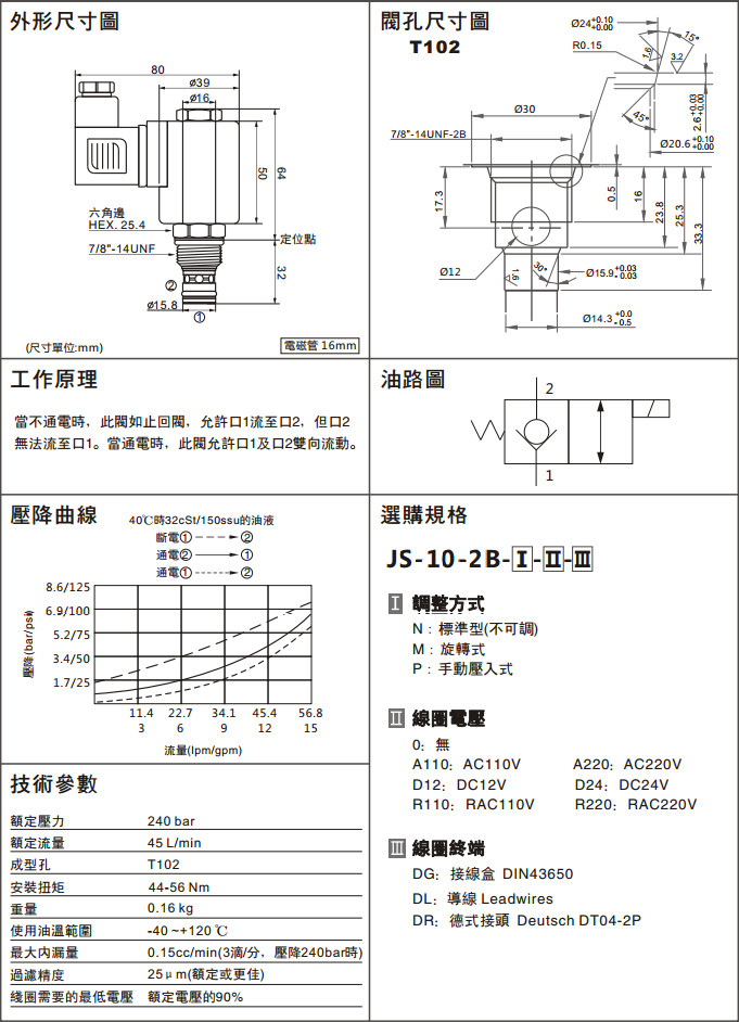 JS-10-2B-P-0-DR,JS-10-2B-P-A110-DR,JS-10-2B-P-D12-DR,JS-10-2B-P-R110-DR,JS-10-2B-P-A220-DR,JS-10-2B-P-D24-DR,JS-10-2B-P-R220-DR,兩通常閉型電磁換向閥