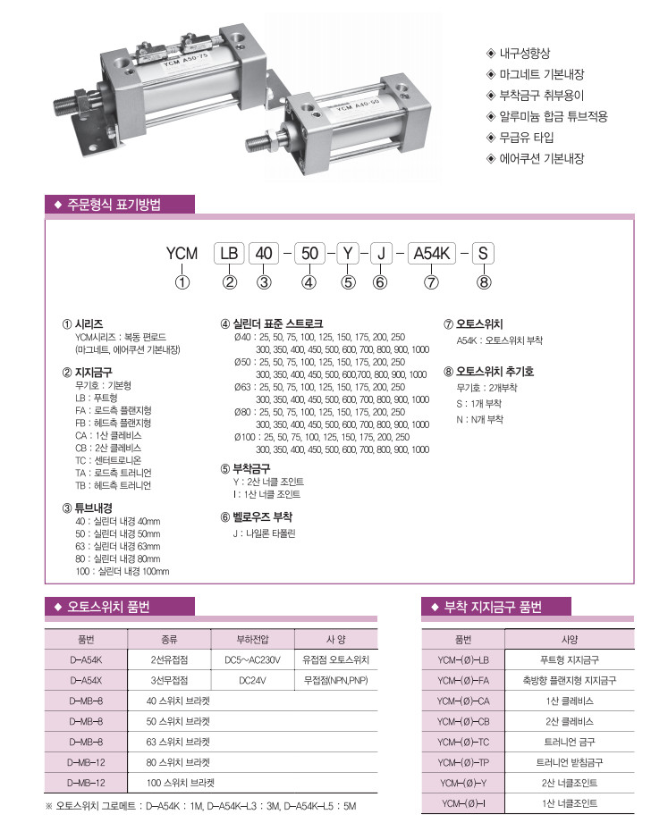 YCM40-25,YCMLB40-25,YCMFA40-25,YCM40-50,YCM40-75,YCM40-100,YCM40-125,YCM40-150,YCM40-175,YCM40-200,拉桿氣缸