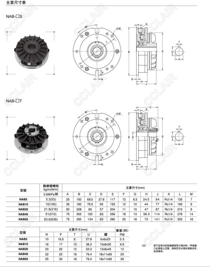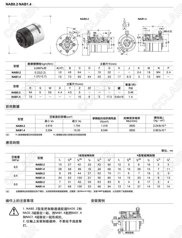 NAB5,NAB10,NAB20,NAB40,NAB65,NAB0.2,NAB1.4,空壓通軸式制動(dòng)器