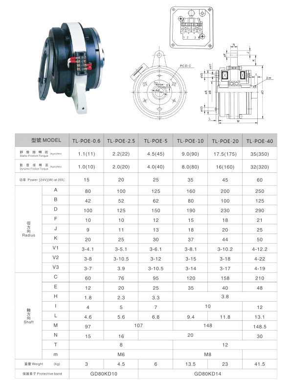 TL-POE-0.6,TL-POE-2.5,TL-POE-5,TL-POE-10,TL-POE-20,TL-POE-40,套筒式電磁離合剎車器組