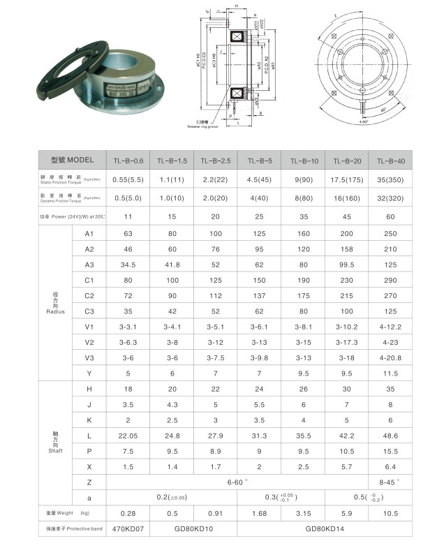 TL-B-0.6,TL-B-1.5,TL-B-2.5,TL-B-5,TL-B-10,TL-B-20,TL-B-40,DC24V電磁制動器