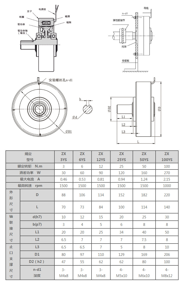ZX3YS,ZX6YS,ZX12YS,ZX25YS,ZX50YS,ZX100YS,單出軸磁粉制動器