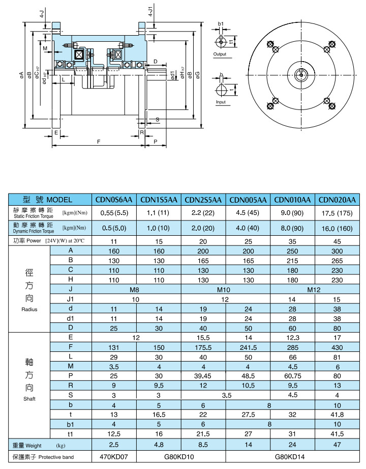 CDN0S6AA,CDN1S5AA,CDN2S5AA,CDN005AA,CDN010AA,CDN020AA雙電磁離合器內(nèi)嵌電磁剎車器組