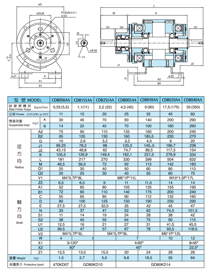 CDB0S6AA,CDB1S5AA,CDB2S5AA,CDB005AA,CDB010AA,CDB020AA,CDB040AA外露式電磁離合器剎車器組合體