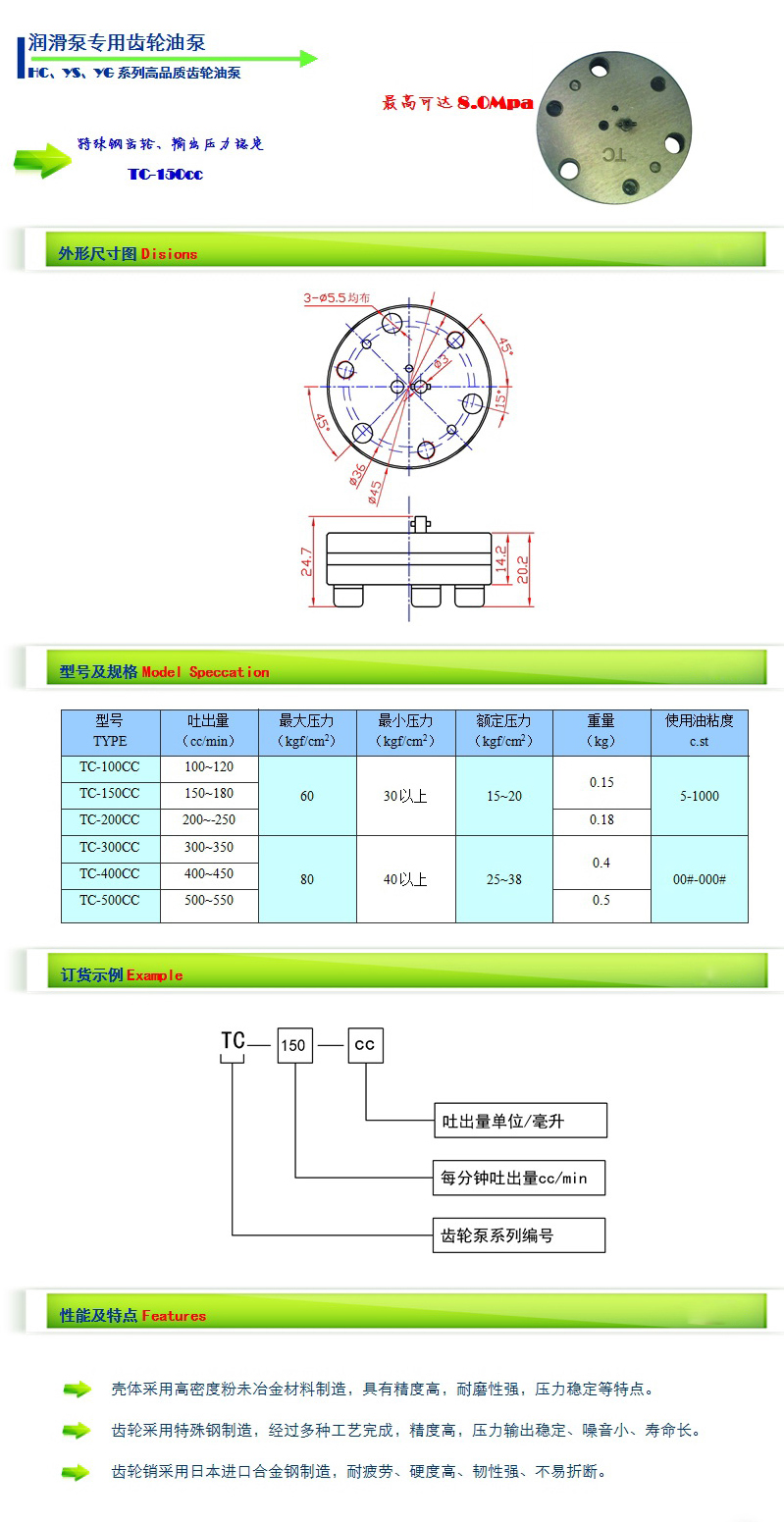 TC-100CC,TC-150CC,TC-200CC,TC300CC,TC-400CC,TC-500CC,潤滑泵轉(zhuǎn)筒齒輪油泵