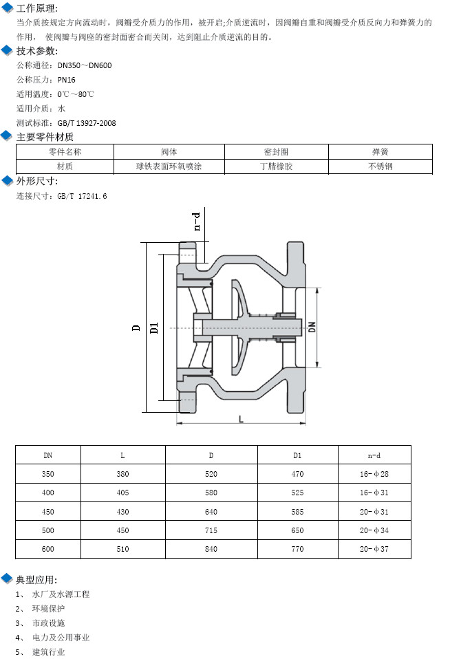 W-H41X-16Q-DN350,W-H41X-16Q-DN400,W-H41X-16Q-DN450,W-H41X-16Q-DN500,W-H41X-16Q-DN600,消聲止回閥
