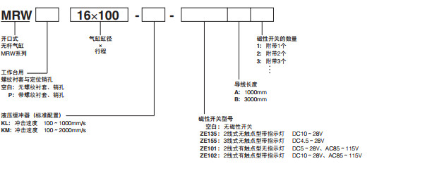 MRW16*100,MRW16*200,MRW16*300,MRW16*400,MRW16*500,MRW16*600,開(kāi)口式無(wú)桿氣缸
