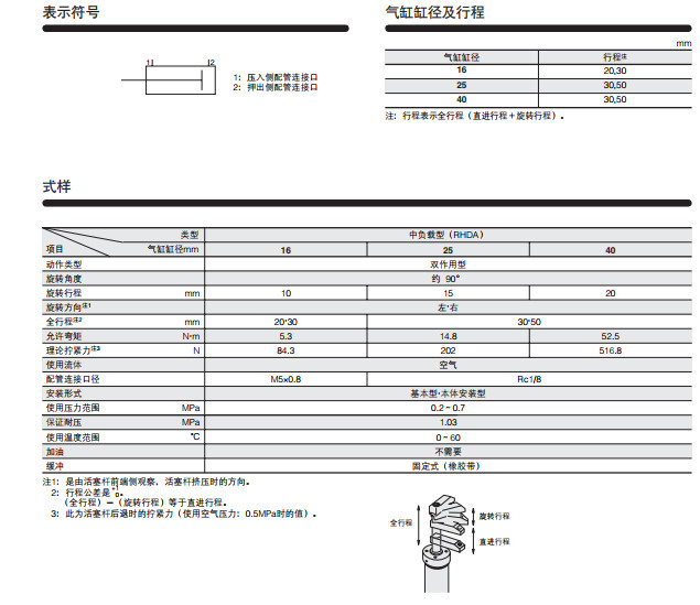RHDA16*20-90,RHDA16*30-90,,RHDA25*30-90,RHDA25*50-90,RHDA40*30-90,RHDA40*50-90,扭轉(zhuǎn)氣缸