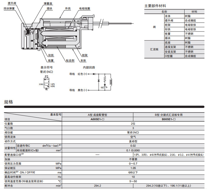 A005E1,A005E1-PS,B005E1,B005E1-PS,005系列微型電磁閥