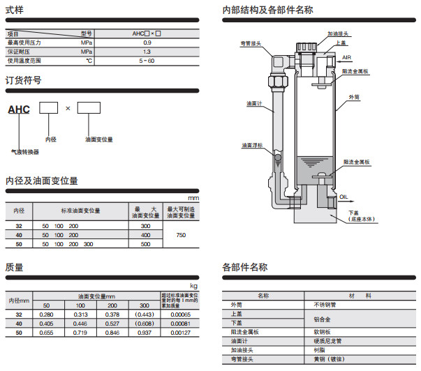 AHC32*50,AHC32*100,AHC32*200,AHC40*50,AHC40*100,AHC40*00,AHC50*50,AHC50*100,AHC50*200,AHC50*300,氣液轉(zhuǎn)換器