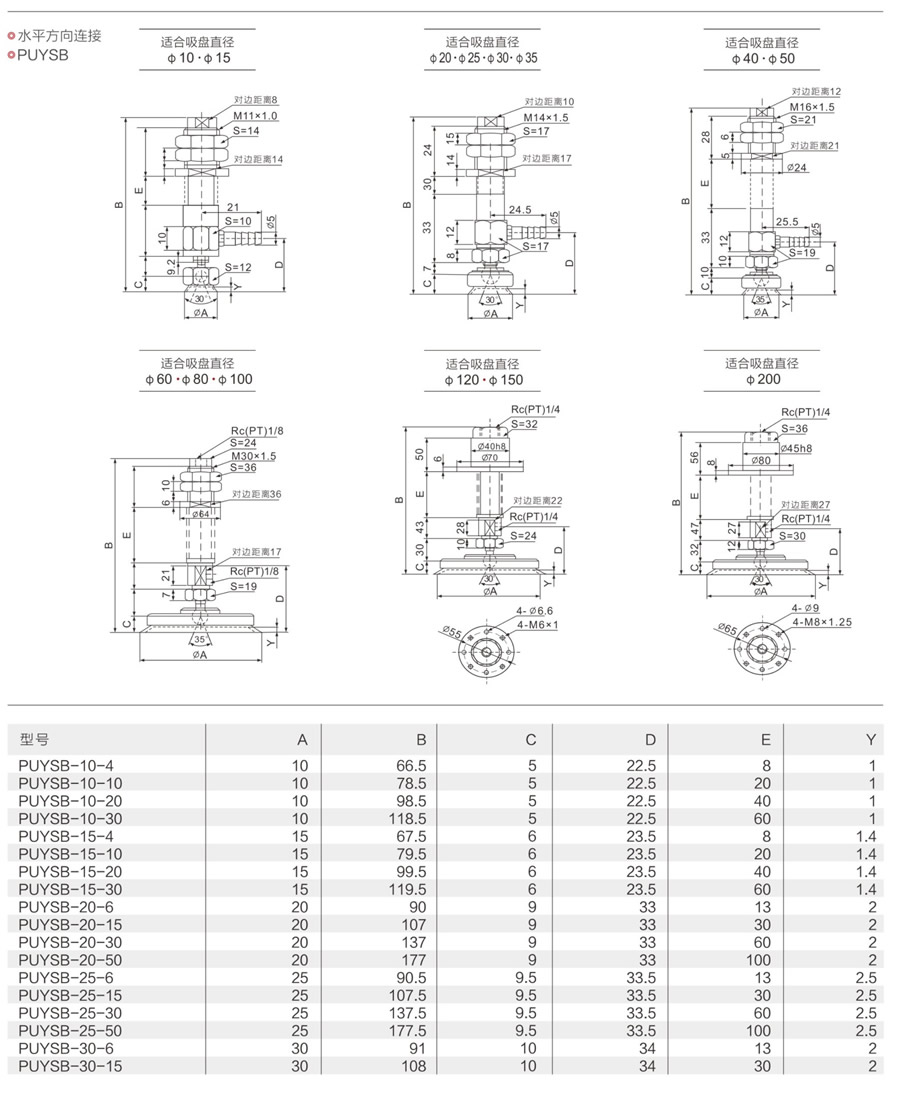 PUTSB-10-4,PUTSB-10-10,PUTSB-10-20,PUTSB-10-30,PUTSB/PUYSB系列真空吸盤