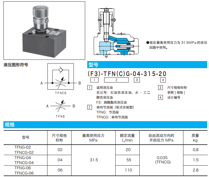 TFNG-02-315-20,TFNG-04-315-20,TFNG-06-315-20,TFNCG-02-315-20,TFNCG-04-315-20,TFNCG-06-315-20,TFN(C)G單向節(jié)流閥