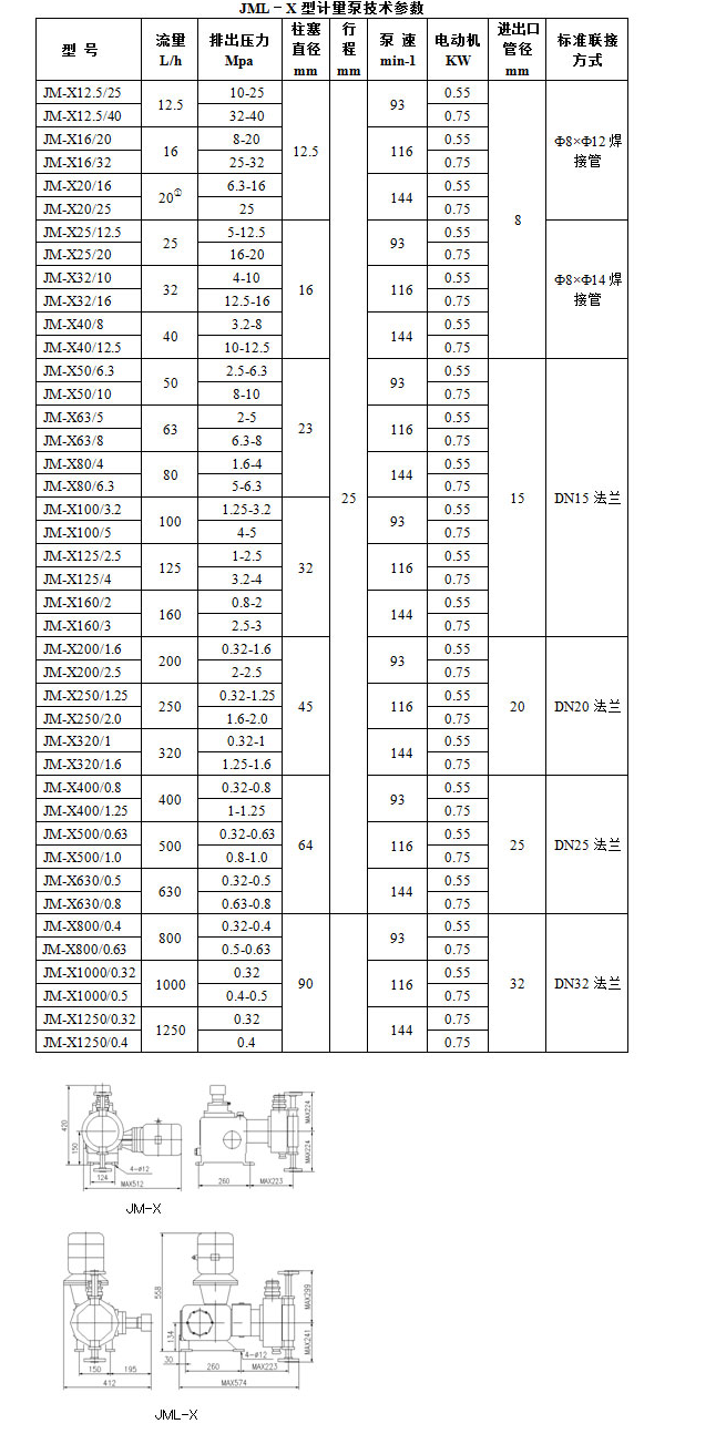 JML-X12.5/25,JML-X12.5/40,JML-X16/20,JML-X16/32,JML-X20/16,JML-X20/25,JML-X液壓隔膜式計(jì)量泵