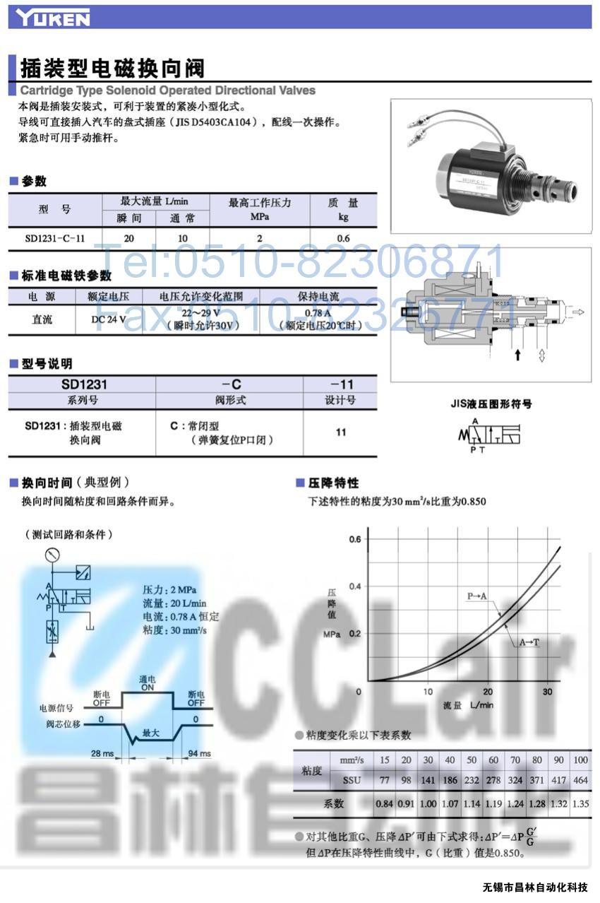 SD1231-C-11,插裝型電磁換向閥,榆次油研插裝型電磁換向閥,YUKEN插裝型電磁換向閥