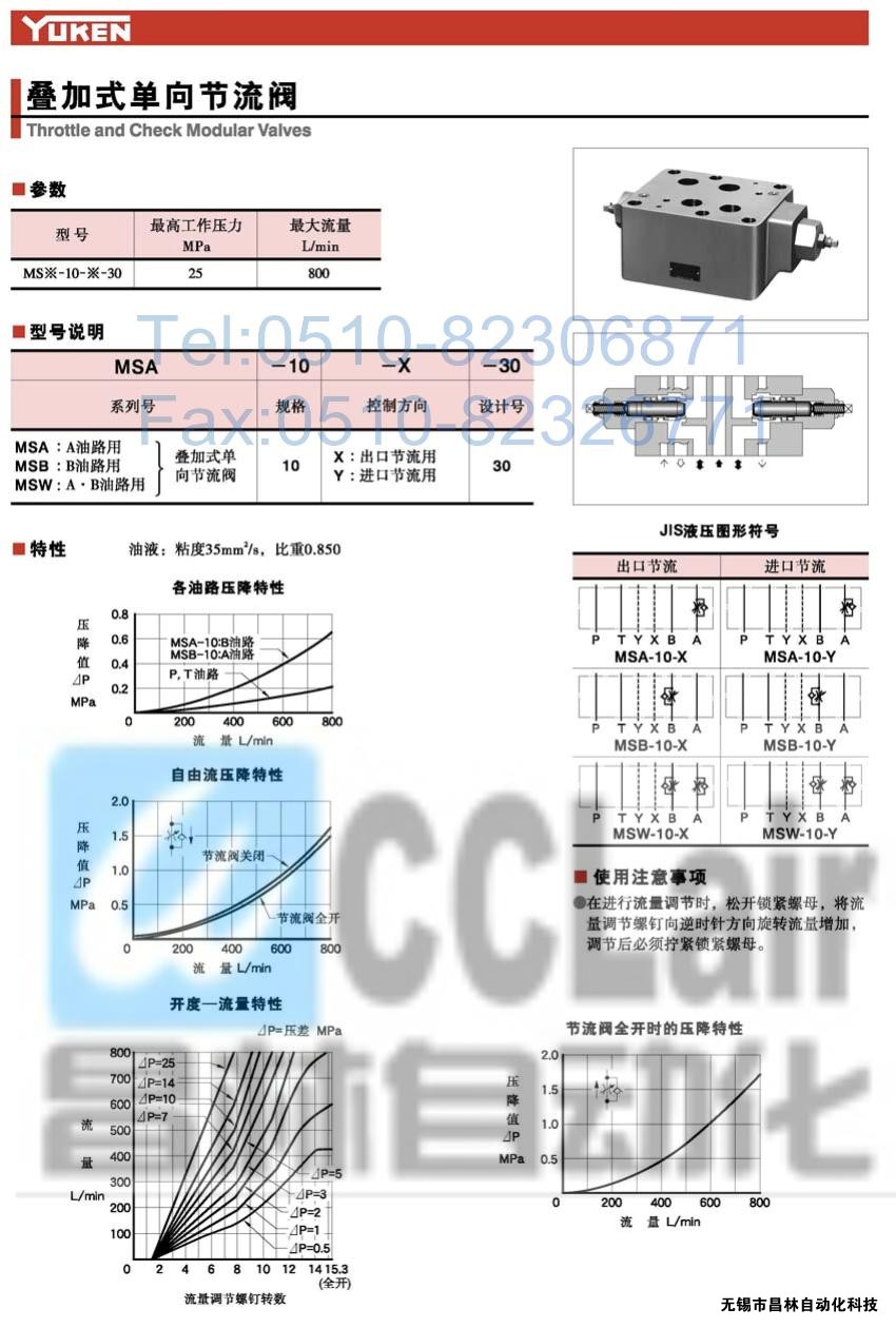MSB-10-Y-30,MSW-10-X-30,MSW-10-Y-30,疊加式單向節(jié)流閥,榆次油研疊加式單向節(jié)流閥,YUKEN疊加式單向節(jié)流閥