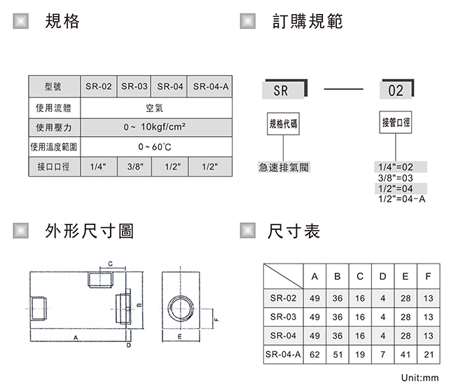 急速排氣閥SR-02,SR-03,SR-04,SR-04-A