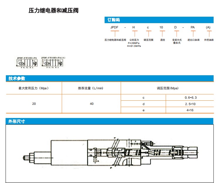 JPDF-Hc10D-PA,JPDF-Hc10D-PA(A),JPDF-Fd10D-PA,壓力繼電器和減壓閥