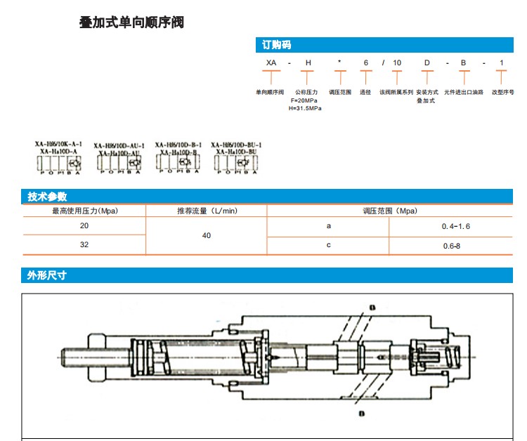 XA-Ha6/16D-B-1,XA-Hc16D-B-1,XA-Hc6/16D-BU-1,XA-Ha16D-BU-1,疊加式單向順序閥