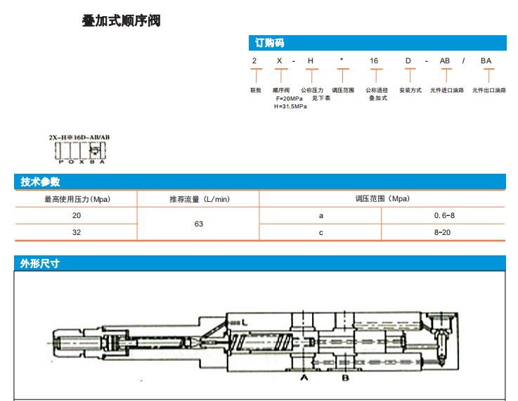 2X-Ha16D-AB/BA,2X-Hc16D-AB/BA,疊加式順序閥