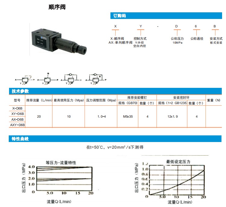 X-D6B,XY-D6B,AX-D6B,AXY-D6B,順序閥