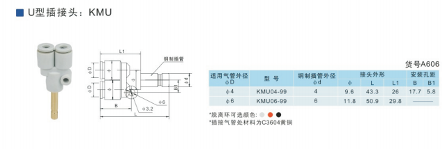 SMC型U型插接頭KMU23-99,KMU03-99,KMU04-99,KMU06-99,