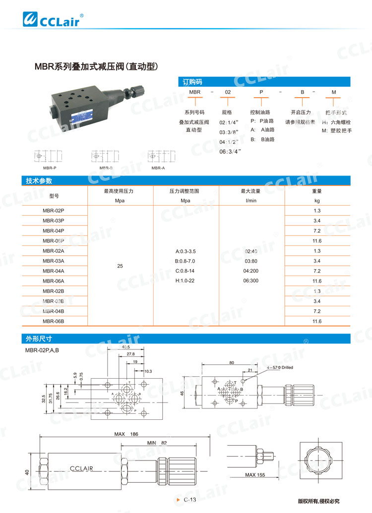 疊加型減壓閥MBRV-02A,MBRV-03A,MBRV-04A,MBRV-06A,MBRV-04B,MBRV-06B,MBRV-04P,MBRV-06P,MBRV-02B,MBRV-03B,MBRV-02P,MBRV-03P,