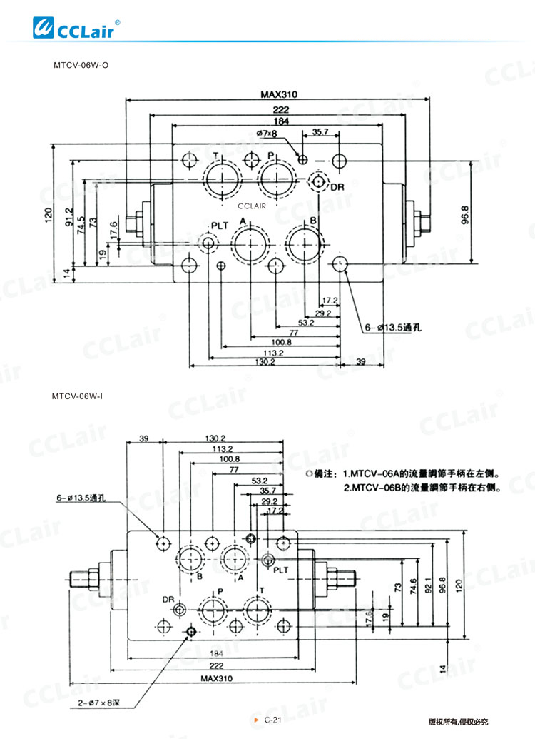 疊加式單向節(jié)流閥MTC-02A,MTC-03A,MTC-04A,MTC-06A,MTC-02B,MTC-03B,MTC-04B,MTC-06B,MTC-02W,MTC-03W,MTC-04W,MTC-06W,