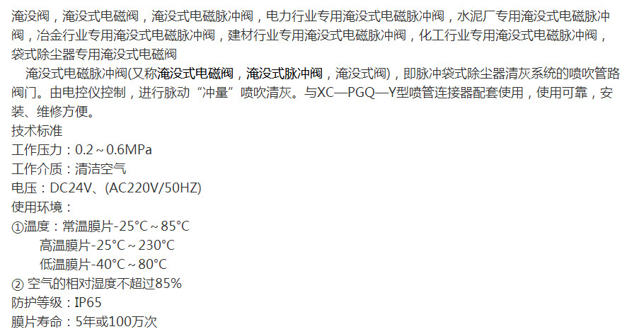 淹沒式脈沖閥YMF-50,
