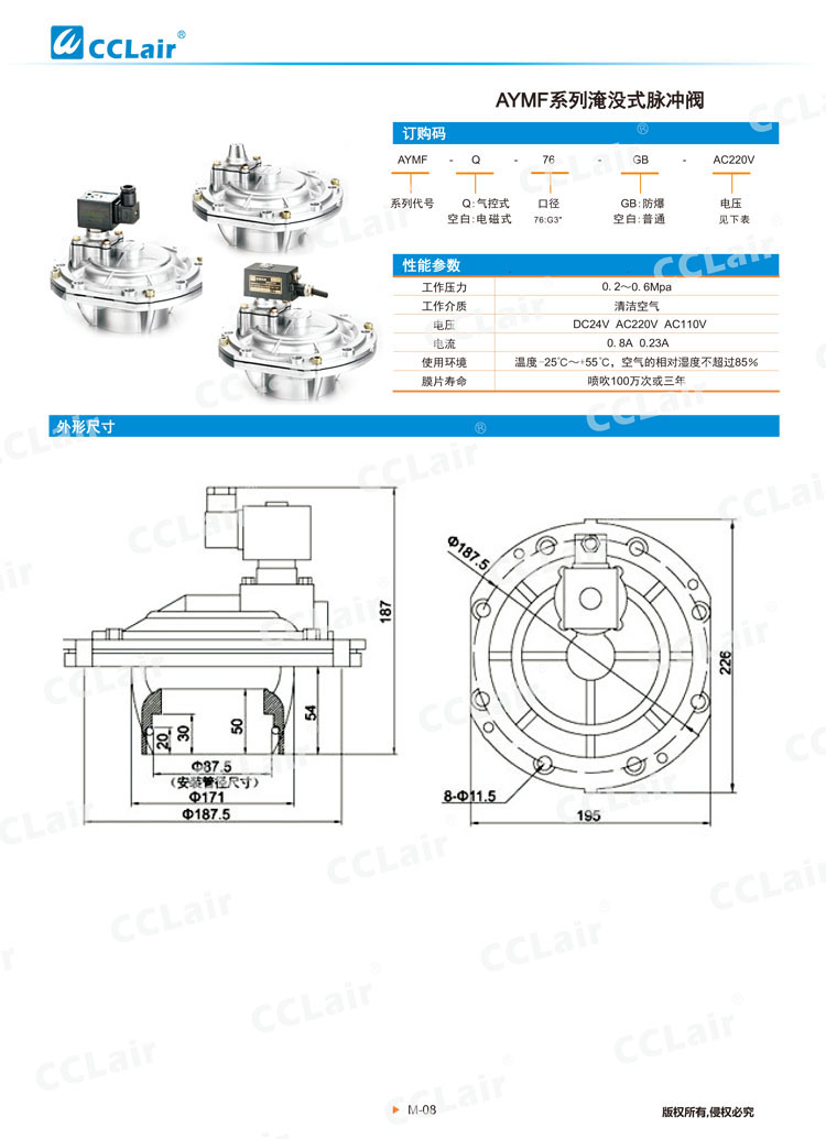 淹沒式脈沖閥YMF-50,YMF-62,YMF-76,YMF-102,