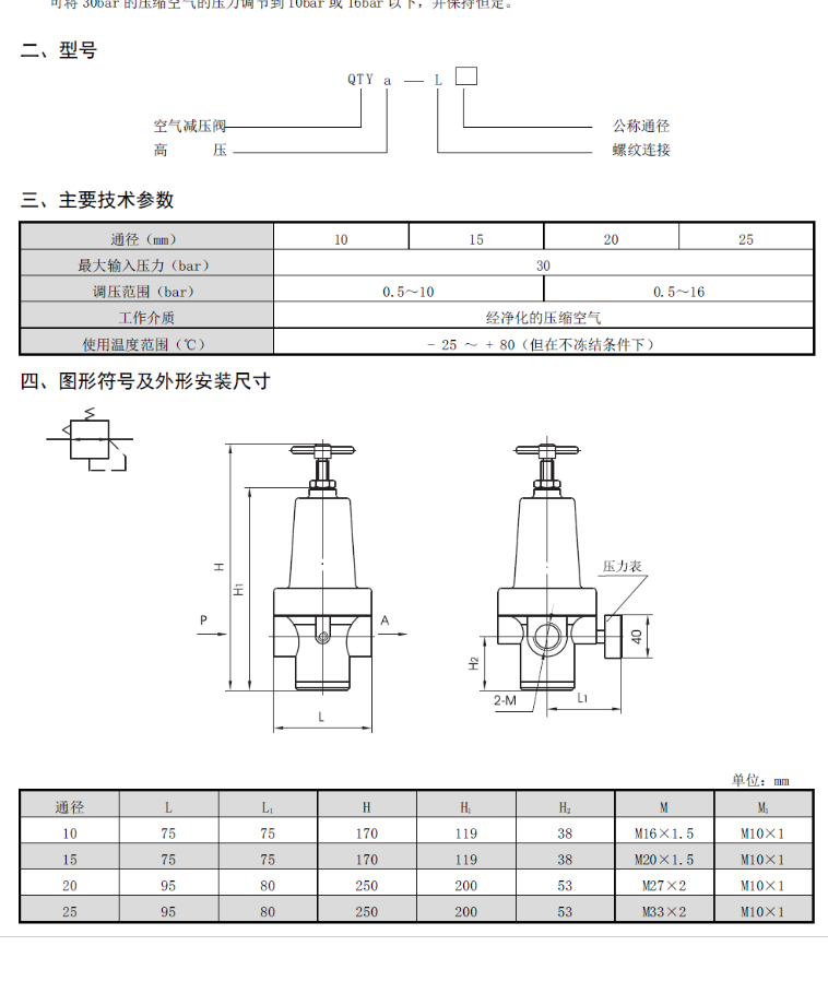QTYa系列高壓空氣減壓閥