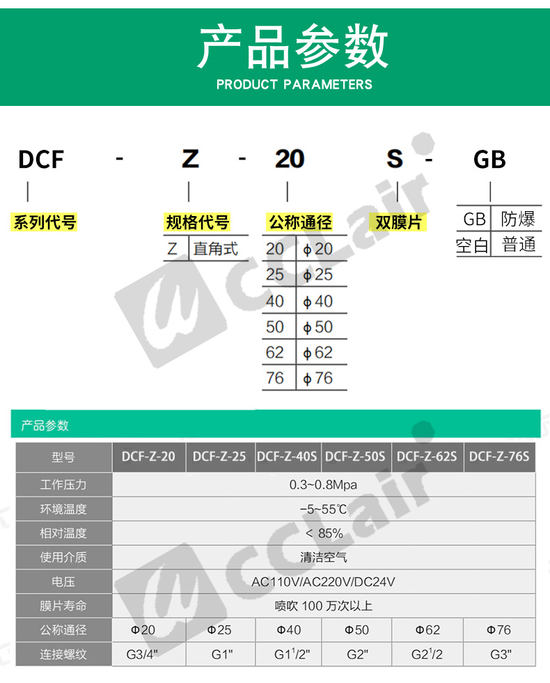 DCF-Y-25,DCF-Y-40S,DCF-Y-50S,DCF-Y-62S,DCF-Y-76S,DCF-Y-102S,淹沒式脈沖閥