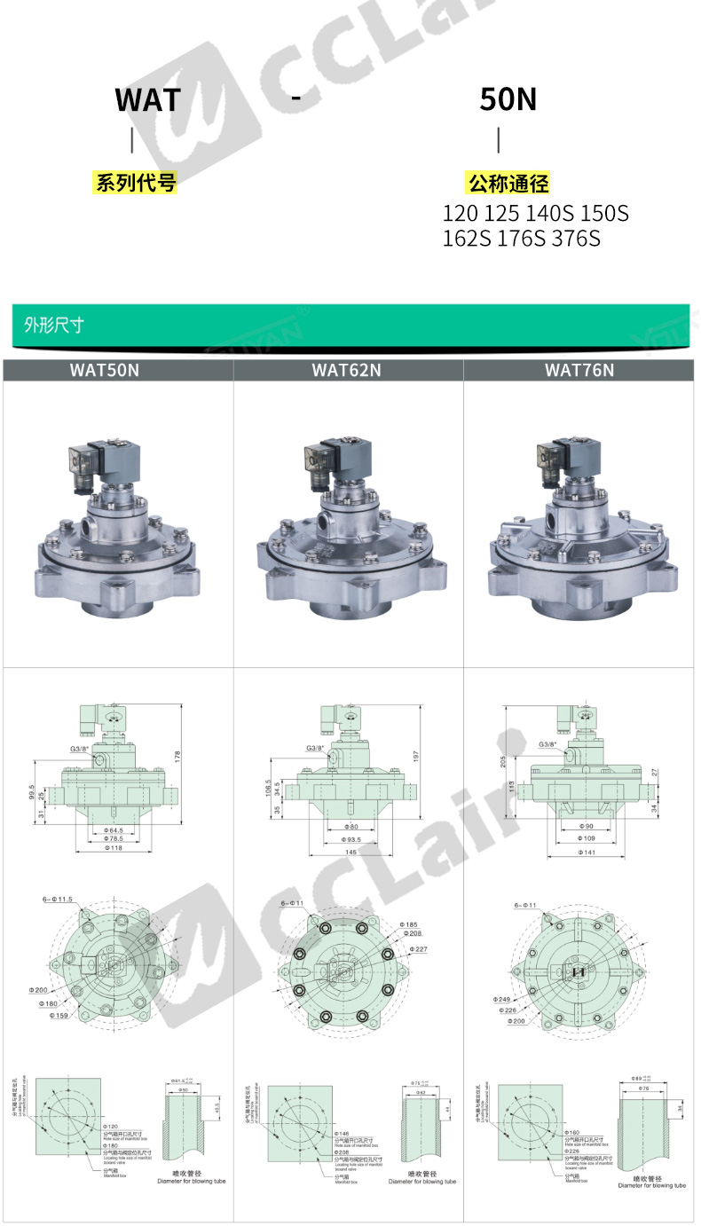MD120,WAT50N,MD125,MD140S,MD176S,MD376S,WAT76N,MD150S,MD162S, WAT62N,華能型直角式脈沖閥