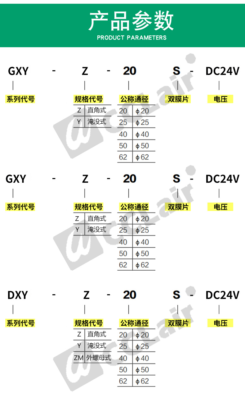 GXY-Z-20A,GXY-Y-25,GXY-Z-15,GXY-Z-20,GXY-Y-50S,GXY-Z-35,GXY-Y-76S,GXY-Z-40S,GXY-Y-89S,GXY-Z-25,GXY-Y-62S,長(zhǎng)管式脈沖閥