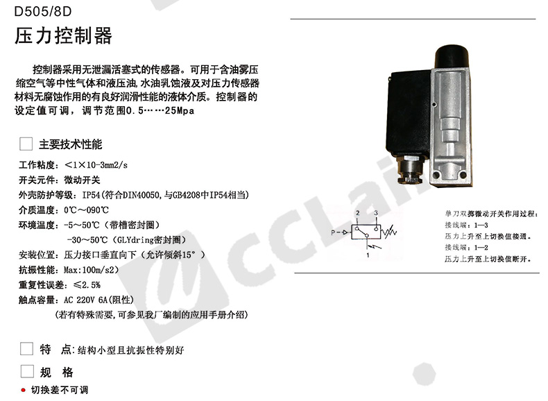0821051 G1/4,0821077 G1/4,0821050 G1/4,壓力控制器 D505/8D切換差不可調(diào)